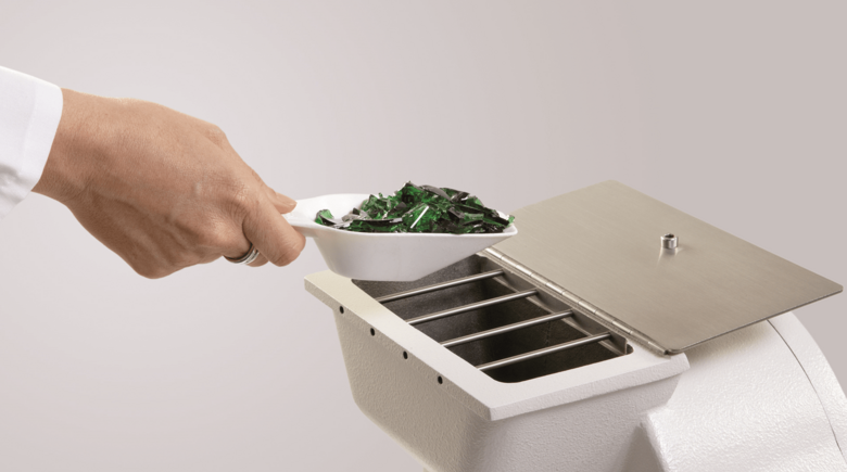 L’échantillon broyé est récupéré dans un récipient collecteur.