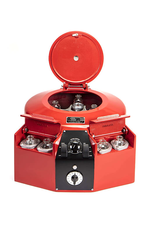Le variateur de vitesse du moteur permet un démarrage lent et en douceur. La centrifugeuse est équipée d’une minuterie analogique permettant de régler la durée des tests de 1 à 15 minutes.