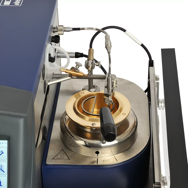 L’instrument comprend un élément chauffant, une coupelle d’essai amovible, des allumeurs à fil chaud interchangeables (gaz et électrique) montés sur un bras de balayage automatique, un thermomètre à résistance de platine (PRT), un anneau d’ionisation pour détecter les éclairs/incendies, un éteignoir et un extincteur.