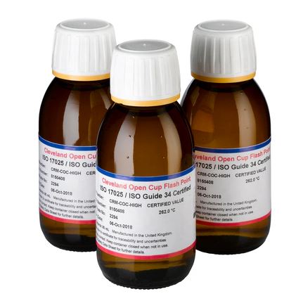 Etalons secondaires PARAGON en point éclair Cleveland : les étalons secondaires en point éclair PARAGON sont certifiés selon la norme ISO 17025 / ISO Guide 34 sous accréditation UKAS.